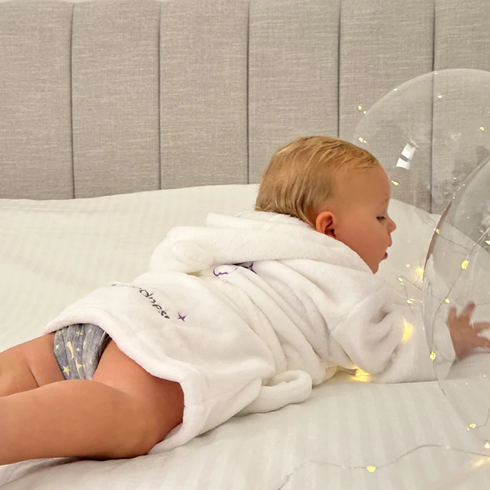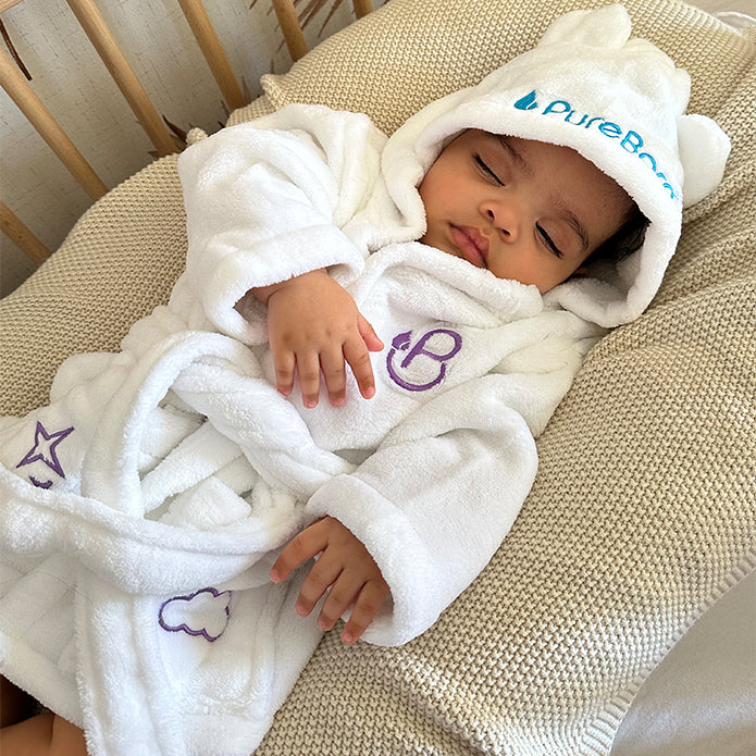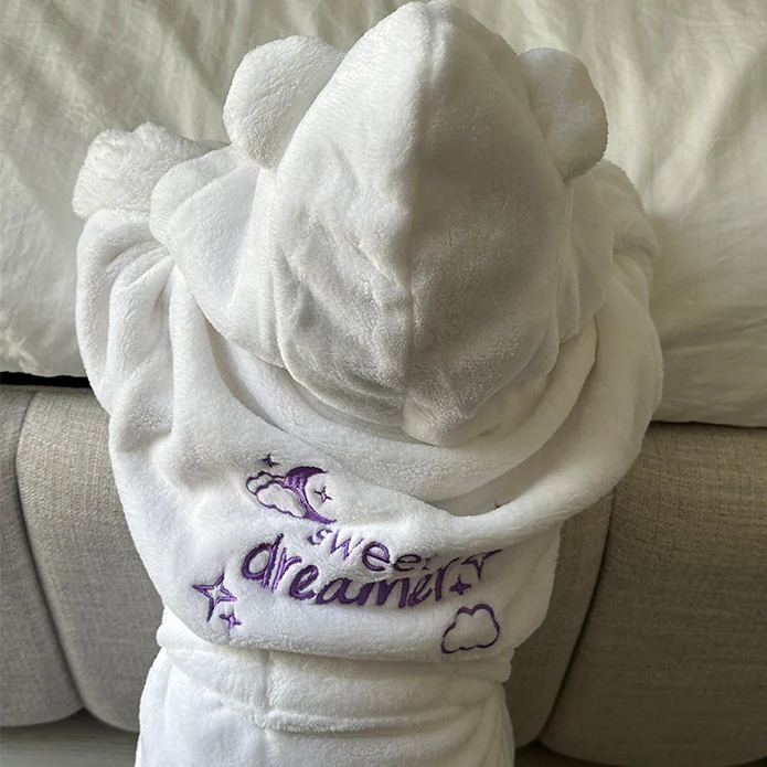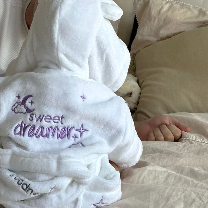 Baby Bathrobe - Sweet Dreamer Embroidered White Soft Touch Fleece