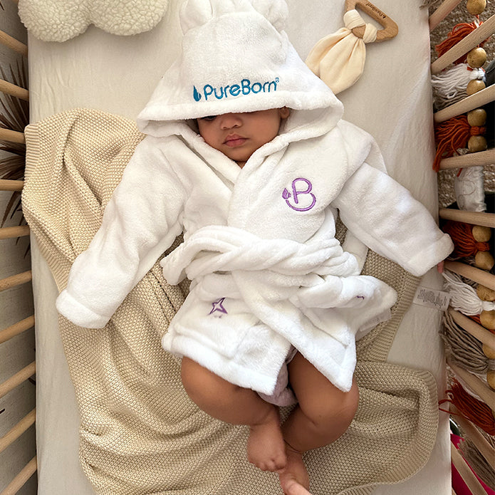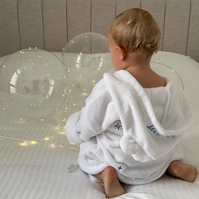 Wrap your little one in warmth and comfort with our plush, soft-touch bathrobe, perfect for bath time and beyond. Made from gentle coral fleece, it features an adorable hood with ears, an easy-tie belt, and two handy pockets—a must-have for those special snuggly moments.